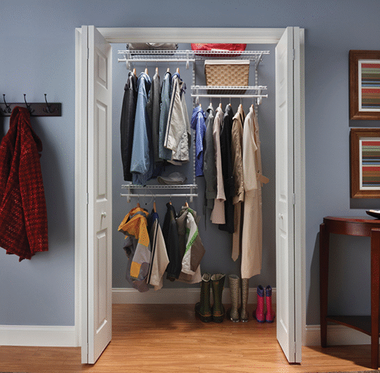 Create space for everyone’s coats and jackets so they’re not strewn throughout the house. Even a small closet will do when it’s smartly configured like this one.