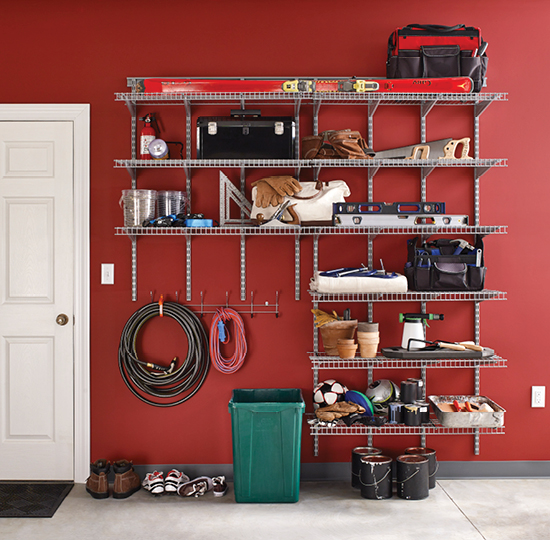The garage must serve a lot of purposes – from carport to workshop to bulk storage – so the organization system has to be sturdy yet flexible. MaxLoad wire shelving can stand up to weighty tools, bulky bins and the elements.